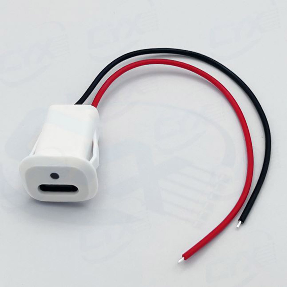 PANEL MOUNT WHITE COLOR USB-C SOCKET WITH 10cm LONG WIRES AND LED INDICATOR